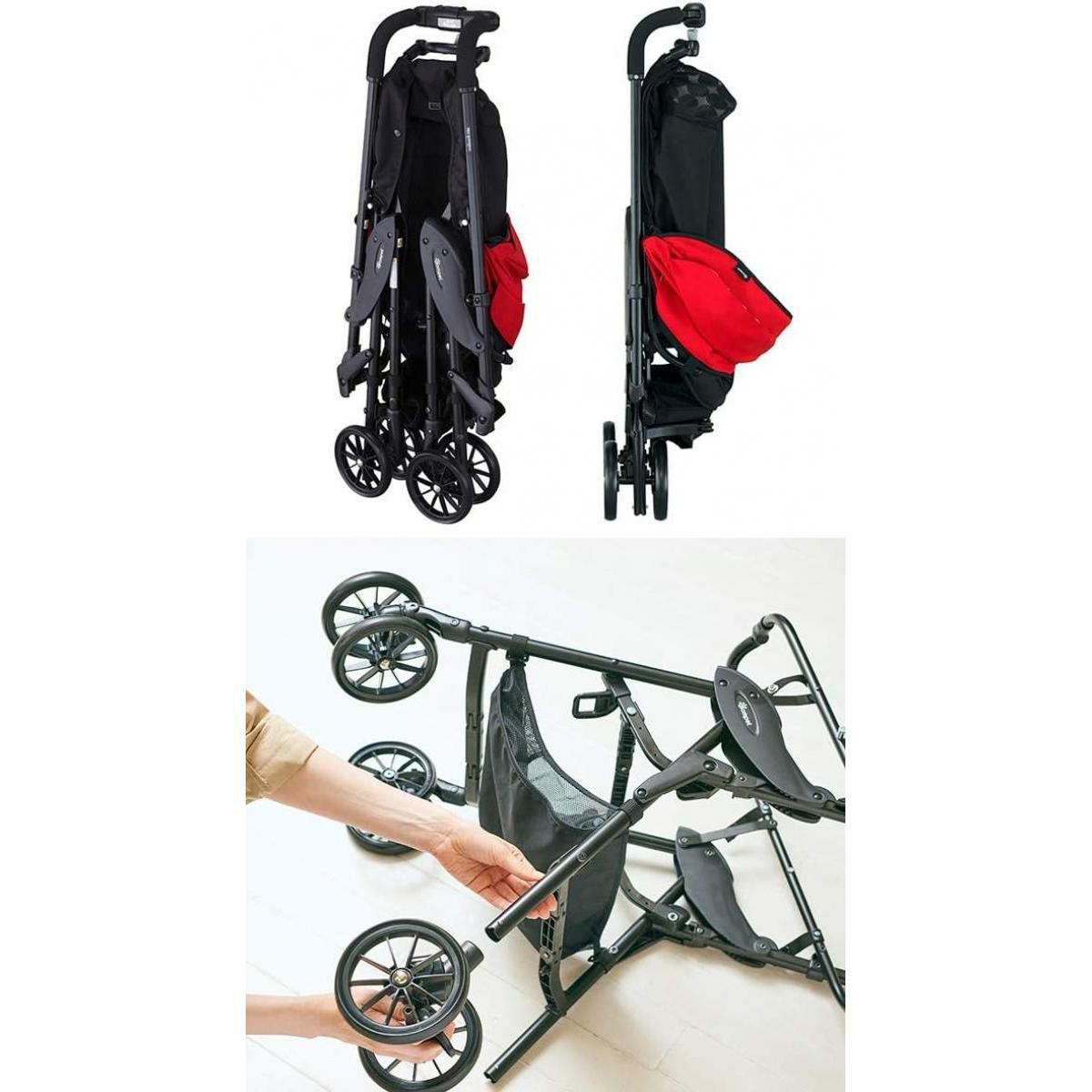 ●キャリーを車体につけたままコンパクトに折りたため、お出かけ先やカフェなどで場所を取りません。また軽量で持ち運びしやすいので、移動中の階段などにもさっと対応することができます。