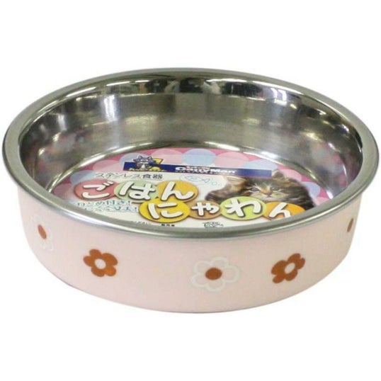 ドギーマン ステンレス 食器 ごはんにゃわん 猫用 ピンク ねこ 滑りにくい すべり止めゴム付 かわいい