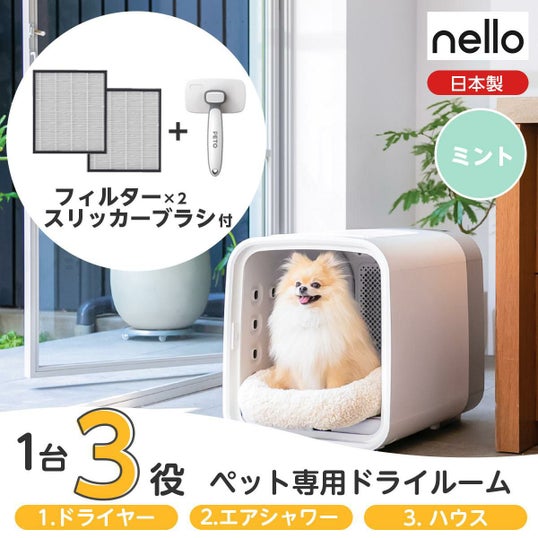 【在庫有・即納】 【フィルター+ブラシ付き】 nello ネロ ペット ドライルーム PD-B10-M ミント 交換用フィルター・ブラシ付 兼用 犬 猫 ドライヤー