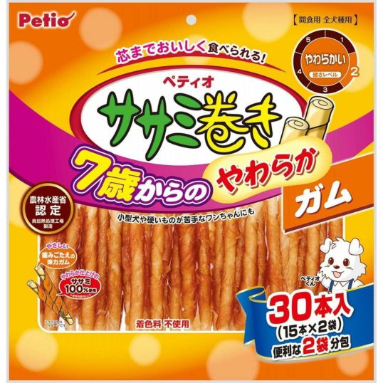 ペティオ(Petio) 7歳からのやわらか ササミ巻き ガム 30本入 全犬種用 おやつ 間食 ドッグフード シニア犬 小型犬 着色料不使用