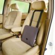 付属のショルダーベルトと車のシートベルトでしっかり固定できます。