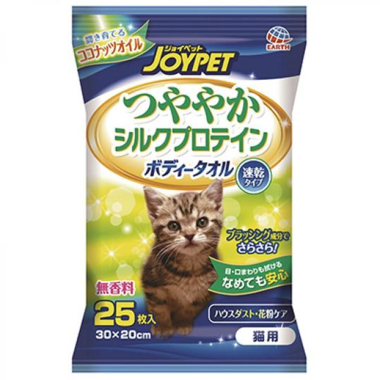 【在庫有・即納】☆ アース・ペット つややかシルクプロテイン ボディータオル 猫用 速乾タイプ 無香料 ボディケア
