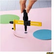 ハンドルにラチェット機構が付いているので、無理に手首をひねることなく、直径1.6~22cmまでの円を簡単にカットできます。紙、ビニール、フィルムなどに。穴あき防止プレート付き。プレート使用時は直径4cm~22cmまでカット可能。