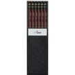日本の伝統色えび茶色と高級感をイメージしたワインレッドを掛け合わせた軸色に、金字で6面に硬度を表示し、金色のリングがついている高級感のあるデザインです。