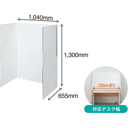 机を囲う集中ブースとして! 部屋の角で使えば簡易個室風に! 背面に設置すればWEB会議の背景に! 【外形寸法】 90°展開時(約):W1040×D655×H1300mm 折りたたみ時(約):W1030×D650×H40mm 質量(約):約3.2kg(たわみ防止パーツ含む) 対応デスク幅:100cm セット内容:本体、たわみ防止パーツ×2、取扱説明書 【材質】 本体:プラパール/たわみ防止パーツ:PP <4971660961528>