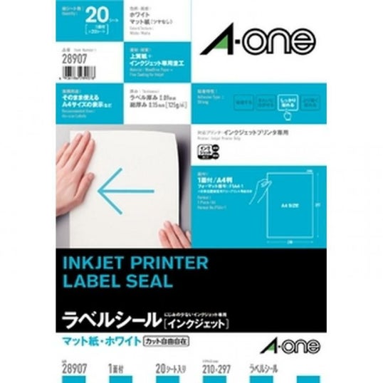 エーワン インクジェットプリンタラベル 紙ラベル A4判 ノーカット 20シート 28907