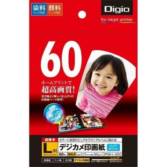 ナカバヤシ JPSK-L-60G デジカメ印画紙 強光沢 L判 60枚