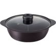 ●素材・材質:本体:アルミニウム合金、底部:鉄・アルミニウム溶射加工、ガラス蓋:強化ガラス製器具、強化の種類:全面物理強化、縁リング:ステンレス鋼、つまみ:フェノール樹脂、表面加工:ふっ素樹脂塗膜加工