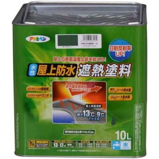 アサヒペン 水性屋上防水遮熱塗料 ダークグリーン 10L ツヤ消し 屋外 ベランダ