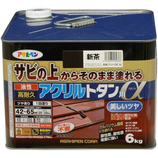 アサヒペン 油性高耐久アクリルトタン用α 塗料 6kg 新茶