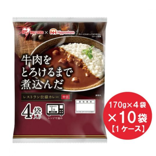 【まとめ買い】 牛肉をとろけるまで煮込んだ レストラン仕様 カレー 170g 4袋×10個 セット アイリスオーヤマ 日本ハム 備蓄 非常食